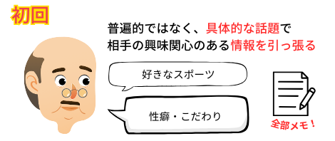 - 共通点を見つけて親近感を持たせる(「私もそれ好き!」)