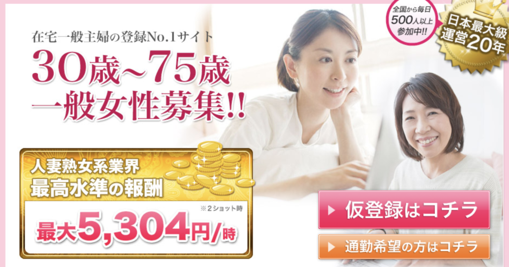 人妻系ライブチャットの中でノンアダでも働ける穴場的ライブチャット。待機時間が短く男性客も落ち着いた人が多いため治安の良さも魅力の1つです。