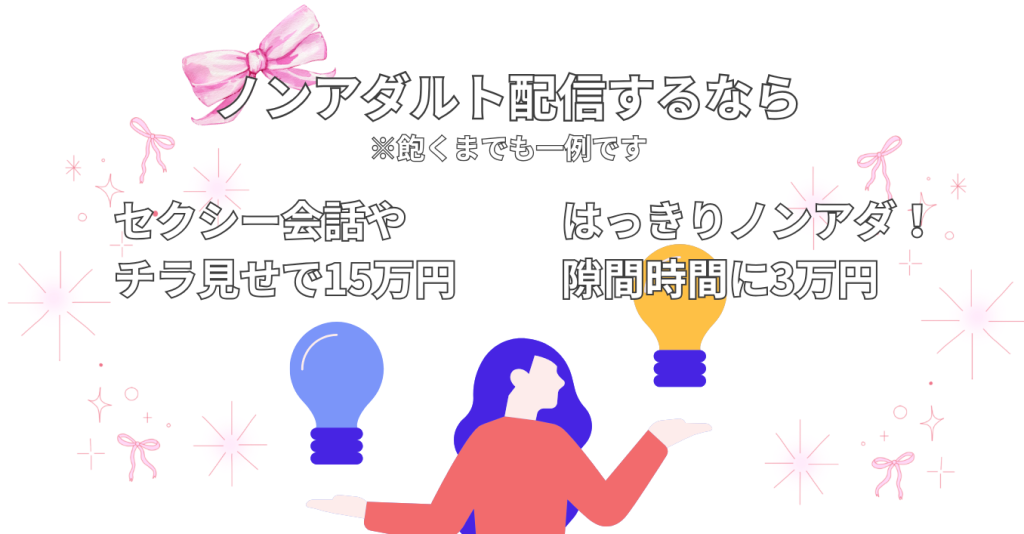 だからこそ、言葉や雰囲気でお客さんを楽しませることが、ノンアダルト配信の醍醐味でもあります。